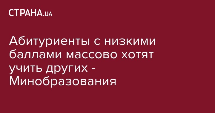 Министерство образования и науки Украины констатировало массовую подачу абитуриентами, набравшими на тестах внешнего независимого оценивания (ВНО) "самые низкие баллы" заявлений на педагогические специальности. Об этом заявила первый заместитель министра образования и науки Инна Совсун, передают "Украинские Новости".