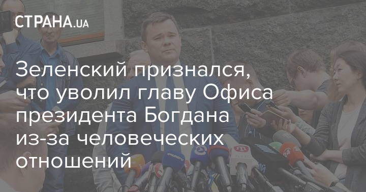 Президент Украины Владимир Зеленский заявил о том, что отставка Андрея Богдана с поста главы Офиса президента связана с личными отношениями. Президент уверяет, что увольнение произошло не из-за работы Богдана.