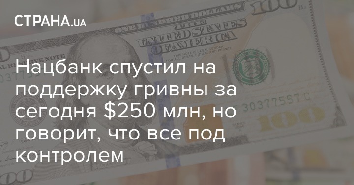 Нацбанк спустил на поддержку гривны за сегодня $250 млн, но говорит, что все под контролем