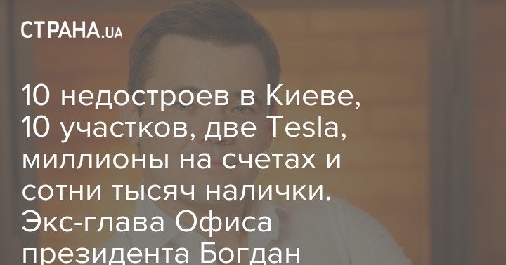 Бывший руководитель Офиса президента Украины Андрей Богдан в поданной перед увольнением электронной декларации показал 15 объектов недвижимости, пять элитных автомобилей, три пары швейцарских наручных часов, сбережения на $1,4 млн, EUR0,8 млн и 10,6 миллионов гривень.