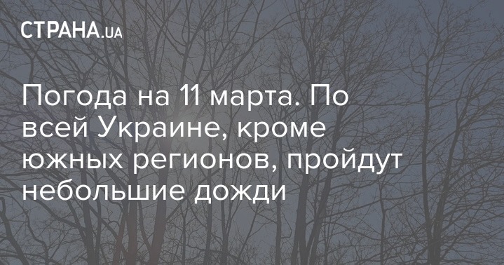 В среду, 11 марта, большую часть Украины, кроме юга, накроет небольшой дождь. А в северных и центральных областях утром местами возможен туман. Об этом сообщает Укргидрометцентр.