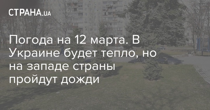 В четверг, 12 марта, на большей части Украины ожидается сухая и солнечная погода. Небольшой дождь прогнозируют днем - на крайнем западе страны. Об этом сообщает "Укргидрометцентр".