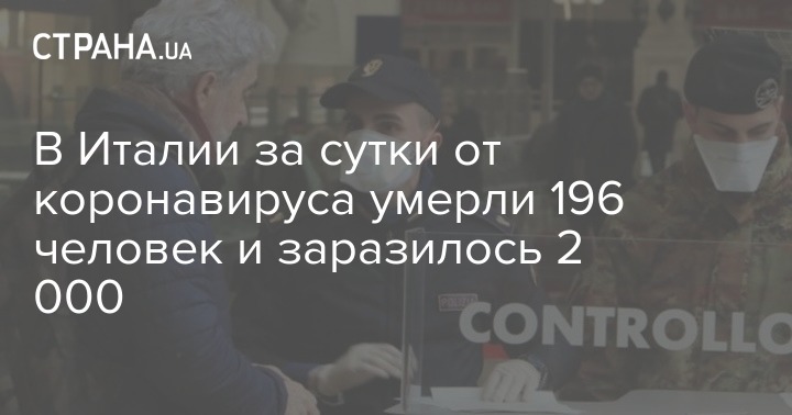 В Италии за сутки от коронавируса умерли 196 человек и заразилось 2 000