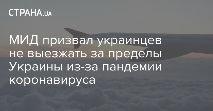 "В связи с официальным объявлением 11 марта с.г. Всемирной организацией здравоохранения (ВОЗ) пандемии коронавируса COVID-19 в мире, а также предостережением относительно роста в ближайшее время количества новых случаев заражения, МИД Украины настойчиво рекомендует украинским гражданам воздержаться от любых поездок за пределы Украины", — говорится в сообщении.