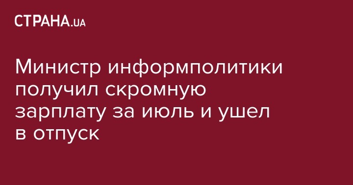 В июле министр информационной политики Юрий Стець получил скромную зарплату в размере 7,6 тысяч гривен. Об этом сообщают Украинские новости.