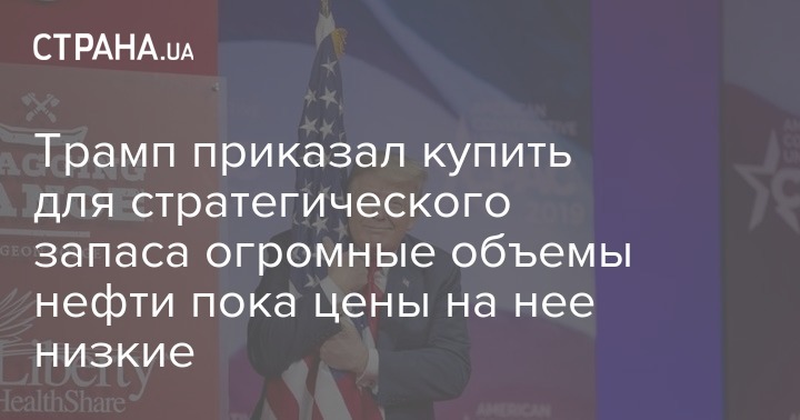 "Исходя из низкой цены на нефть, я поручил министру энергетики закупить большой объем нефти по очень хорошей цене для стратегического нефтяного резерва. Мы заполним его до самого верха", - сказал президент.
