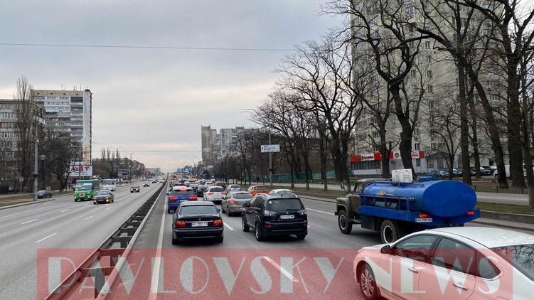 Пробки в Киеве образовались, несмотря на карантин. Фото: Telegram/ PavlovskyNews