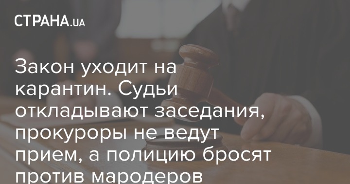 На входах в суды Киева бойцы судебной охраны без масок никого не пропускают. Судьи проводят неотложные слушания, облачившись в респираторные маски, которые у многих были припасены на случай слушания дел с туберкулезниками и другими заразными обвиняемыми.