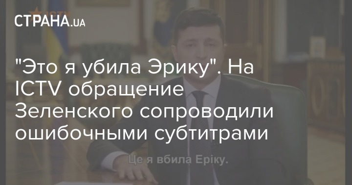На канале ICTV произошел технический сбой во время трансляции видеообращения президента Украины Владимира Зеленского. Пока глава государства рассказывал, как оказавшимся за границей украинцам можно вернуться домой в условиях карантина, внизу экрана мелькали субтитры, вероятно, из какого-то детективного фильма или сериала.