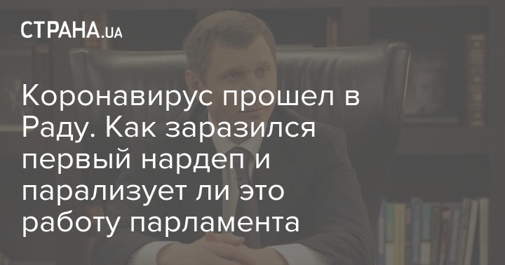 Депутат Александр Качура проинформировал, что у одного из парламентариев медики выявили заражение коронавирусом.