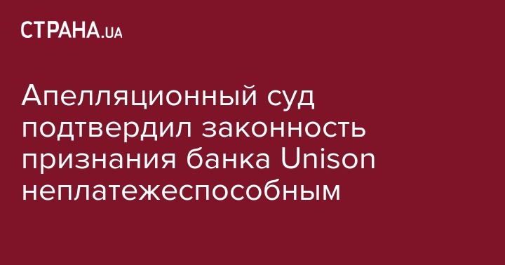 Апелляционный административный суд Киева 2 августа 2016 года подтвердил законность решения Национального банка Украины (НБУ) отнести ПАО "Банк "Юнисон" (Киев) в категорию неплатежеспособных из-за непрозрачной структуры собственности.