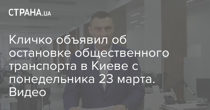 Сегодня, 21 марта, мэр Киева Виталий Кличко в своем экстренном обращении объявил о том, что с понедельника, 23 марта, в Киеве будет остановлен общественный транспорт. Он призвал всех киевлян более строго придерживаться карантина.