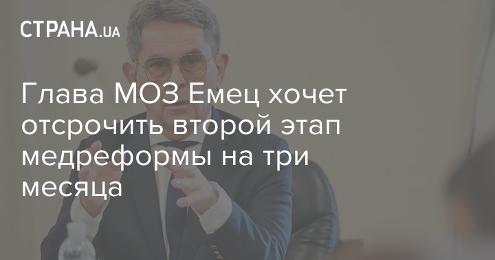 Министр здравоохранения Украины Илья Емец заявил, что второй этап медреформы, который должен был стартовать 1 апреля, будет перенесен на три месяца.
