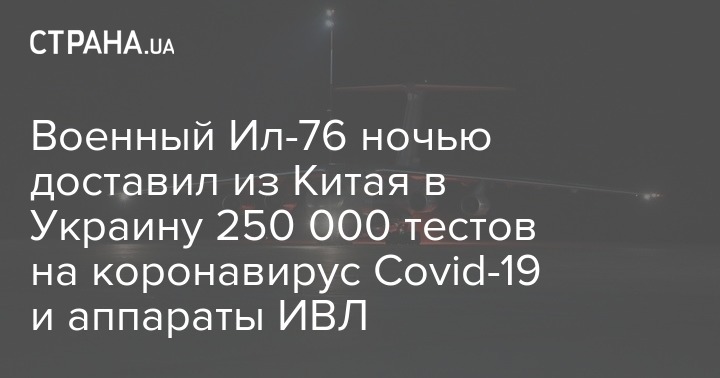 Сегодня ночью, 23 марта, украинский военный самолет Ил-76 доставил в Киев партию медицинского гуманитарного груза из Китая. В частности, на борту лайнера, приземлившегося в Борисполе, находятся 250 000 тестов на коронавирус Сovid-19.