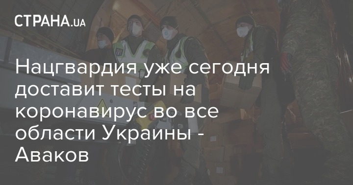 "Нацгвардия в сопровождении медиков начнет доставку поступивших тест-систем по областям. Для этого будет использована авиация и спецавтомобили. К концу дня понедельника достаточное количество тестов будет во всех областях страны", - сказал Аваков.