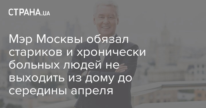 Мэр Москвы Сергей Собянин обязал москвичей старше 65 лет и страдающих хроническими заболеваниями (сахарным диабетом, бронхиальной астмой, хронической болезнью почек, онкологическими заболеваниями, а также перенесшие инфаркт или инсульт) не выходить из дома в период с 26 марта по 14 апреля из-за риска заразиться смертельно опасным коронавирусом. Тех, у кого есть дача, он призвал уехать из города. Об этом градоначальник российской столицы сообщил в своем блоге.