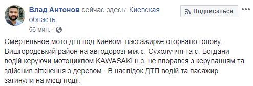 Недалеко от Киева мотоциклист с пассажиркой попали в смертельное ДТП - водитель и девушка погибли на месте.