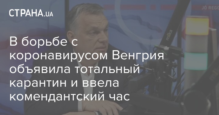"Мы вводим по всей Венгрии комендантский час - с 28 марта по 11 апреля. В течение двух недель мы все сможем покидать наши дома и места нахождения только ради работы и для удовлетворения базовых нужд", - сказал премьер Виктор Орбан в эфире местного радио, как передает "Интерфакс-Украина".