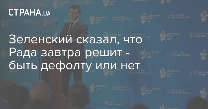 В воскресном обращении к украинцам перед внеочередным заседанием Верховной Рады, запланированном на понедельник, Владимир Зеленский заявил, что Рада завтра решит - быть дефолту в Украине или нет. Для того, чтобы дефолта не случилось, нужно, чтобы депутаты проголосовали за два закона.