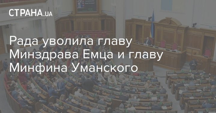 Рада на внеочередном заседании в понедельник, 30 марта, уволила министра здравоохранения Илью Емца и главу министра финансов Игоря Уманского.