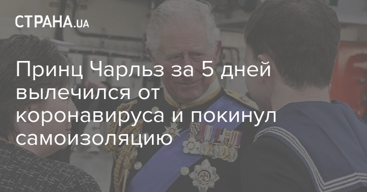 71-летний принц Чарльз, который был болен коронавирусной инфекцией нового типа, о чем стало известно 25 марта, вылечился и вышел из режима самоизоляции. Об этом сообщает Reuters со ссылкой на пресс-секретаря принца Уэльского.
