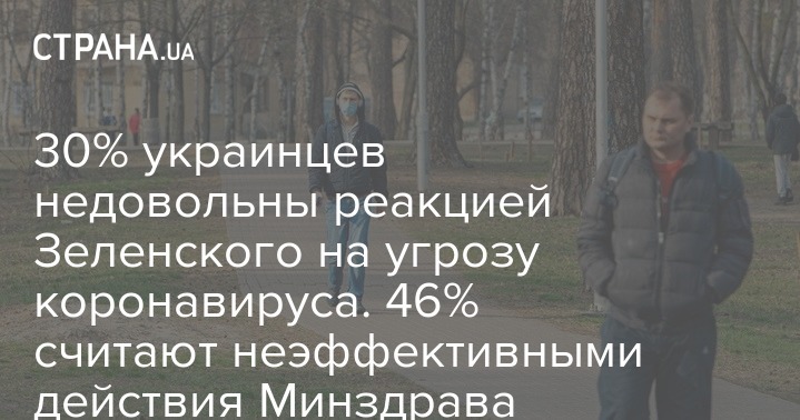 Почти треть украинцев считает неэффективной реакцию президента Украины Владимира Зеленского на угрозу распространения коронавируса в стране, 46% не удовлетворены действиями Министерства здравоохранения.