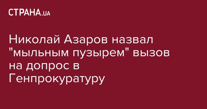 Бывший премьер-министр Николай Азаров отреагировал на вызов на допрос в Генеральную прокуратуру. Он назвал действия столичной прокуратуры - "очередным мыльным пузырем", а действия генпрокурора - "опричниной". Об этом Азаров написал на своей странице в Facebook