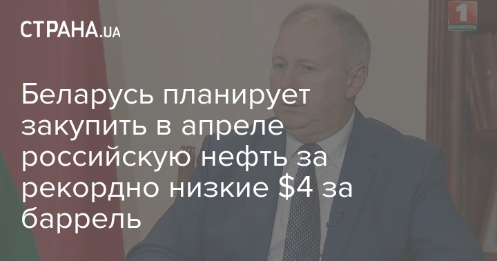 Республика Беларусь рассчитывает в апреле приобрести 2 миллиона тонн российской нефти по цене около 4 долларов за баррель. Переговоры о покупке уже идут.