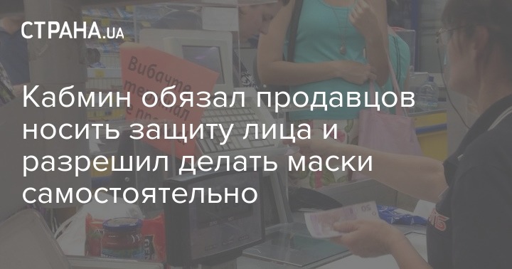 Кабмин распорядился ввести обязательную защиту лица и глаз для работников торговли и сферы услуг в рамках борьбы с коронавирусной инфекцией. Также правительство дало добро на самостоятельное изготовление масок.