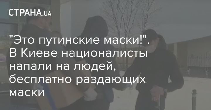 На киевлян, раздававших медицинские маски на улице, напали радикалы, обозвав людей "сепаратистами".