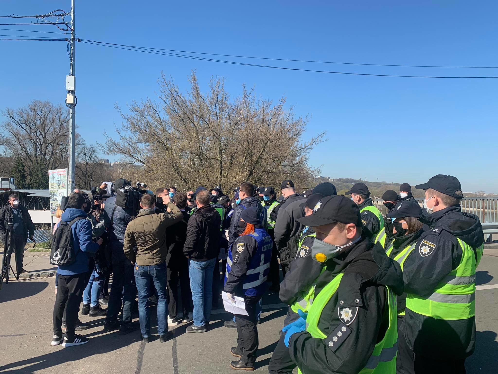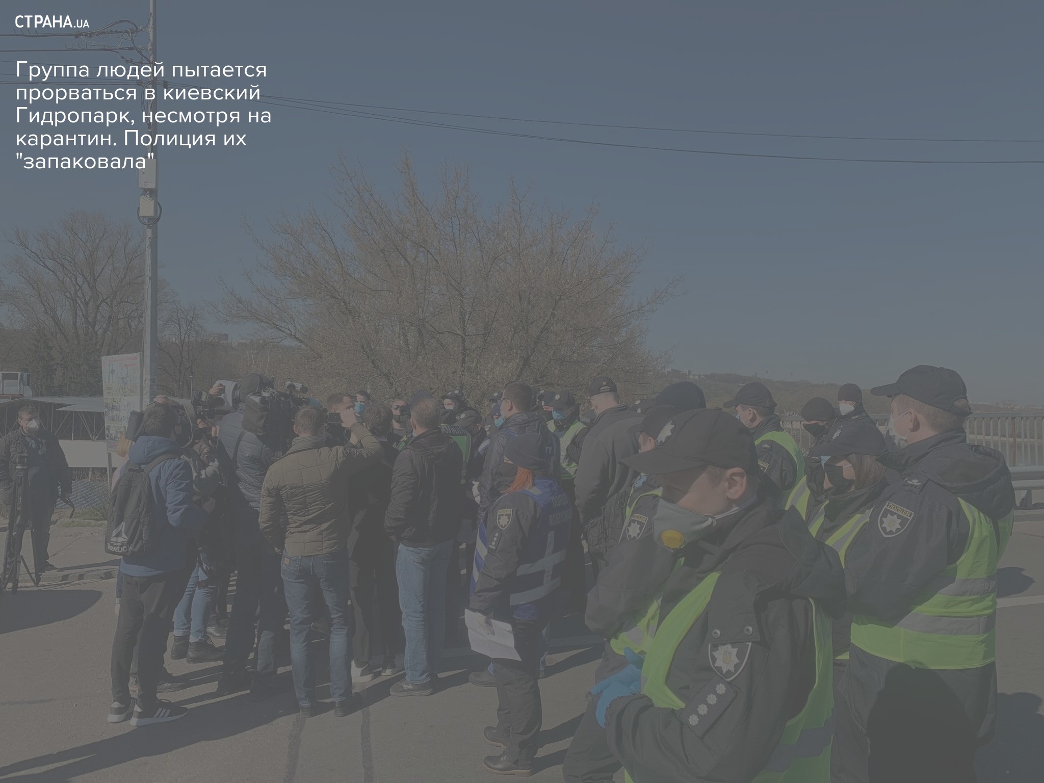 Группа людей пытается прорваться в киевский Гидропарк, несмотря на карантин. Полиция их "запаковала"
