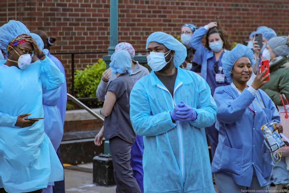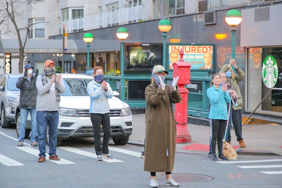 21:44 Русскоязычный гид в Нью-Йорке опубликовал в Facebook фото, сделанные у госпиталя Ленокс-Хилл на Манхэттене. По его словам, каждый день в семь вечера медики, которые могут покинуть передовую выходят на улицу перед госпиталем и получают свою заслуженную минуту славы. Нью-Йоркцы долго аплодируют и кричат "спасибо!", а проезжающие мимо машины останавливаются и гудят.