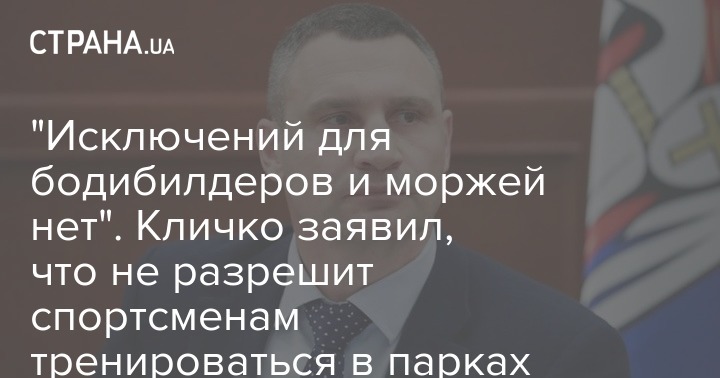 Мэр Киева Виталий Кличко прокомментировал конфликт полиции со спортсменами, которые вопреки запретам пытались прорваться на спортплощадку в Гидропарке. По его словам, исключений ни для бодибилдеров, ни для моржей не будет - тренироваться в парк их не пустят.