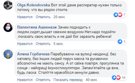 10:32 Муніципальна Варта Києва публикует фото, как проводит разъяснительную работу среди населения: "При пребывании на улице используйте индивидуальную защиту. Надень защитную маску, перчатки. Избегайте кластера людей. Будьте здоровы, будьте дома!" На фото они подошли к беременной женщине с ребенком, которые сидели в парке.