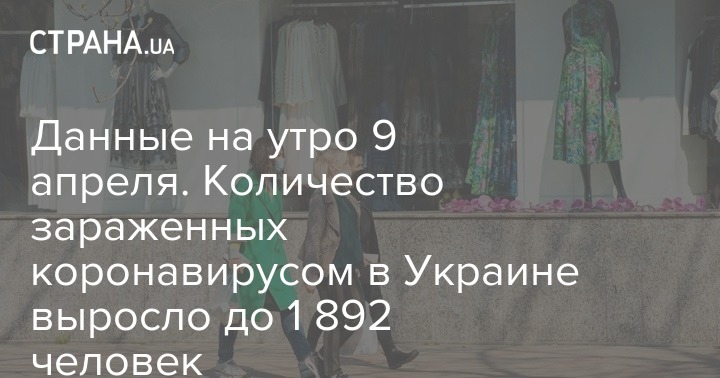 В Украине, на утро 9 апреля зафиксировано уже 1 892 случая коронавирусной болезни. А вчера, 8 апреля, на эту минуту таких случаев в стране было - 1 668. Всего же за минувшие сутки в стране зафиксировано 224 новых случая заражений.