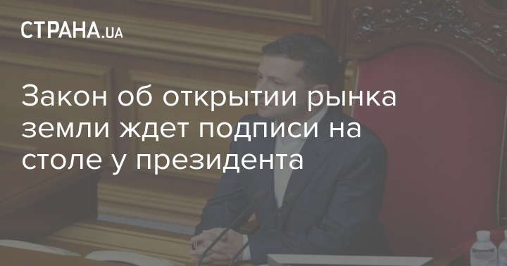 Председатель Верховной Рады Дмитрий Разумков подписал и направил на подпись президенту Украины Владимиру Зеленскому закон об открытии рынка земли с 1 июля 2021 года с ограничением его работы в первые три года только паями в собственности физлиц с максимальным владением в одних руках 100 га.