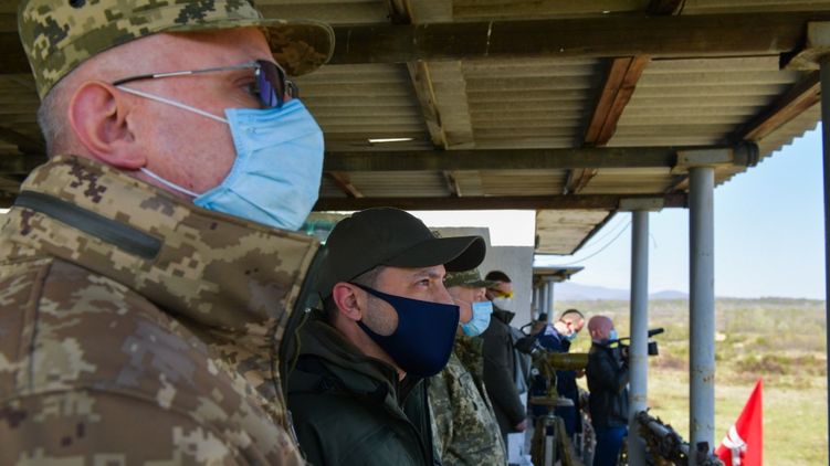 Владимир Зеленский (в темно-синей маске). Фото: president.gov.ua