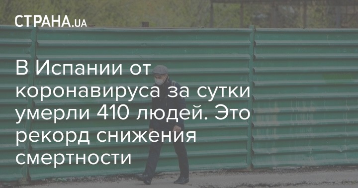Министерство здравоохранения Испании утверждает, что за прошедшие сутки в стране от коронавируса умерли 410 человек. Это самый низкий показатель за последний месяц.