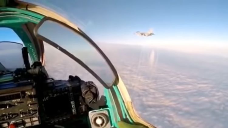 На кадрах можно заметить, как самолет ВКС России близко подлетает к F-16 и приветствует пилота истребителя НАТО. Однако в подписи к ролику не указано, когда он был снят ролик.