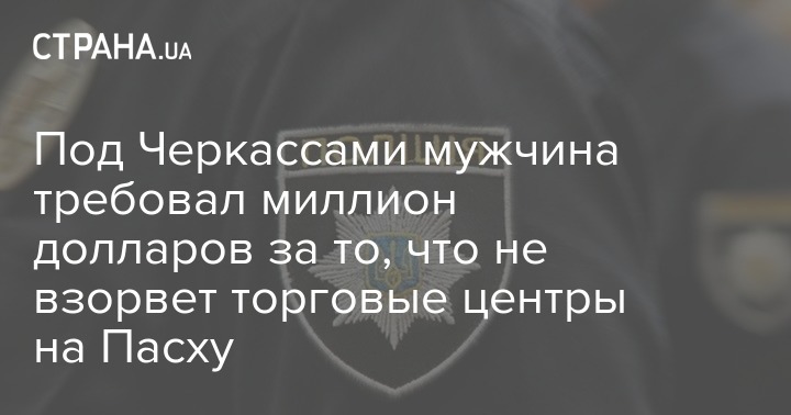 Полиция в Черкасской области задержала жителя г.Городище, который на Пасху сделал ложное сообщение о минировании банкоматов и торговых центров, требуя $1 млн за предотвращение взрывов.