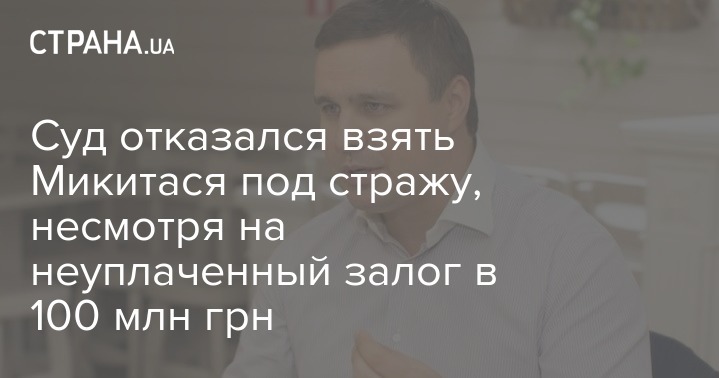 Суд отказался взять Микитася под стражу, несмотря на неуплаченный залог в 100 млн грн