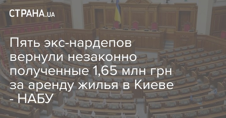 Народные депутаты Украины VIII созыва вернули около 1,65 млн грн безосновательно полученной компенсации за аренду жилья или гостиничных номеров в Киеве. Это произошло в результате расследования детективов НАБУ, сообщается на сайте ведомства.