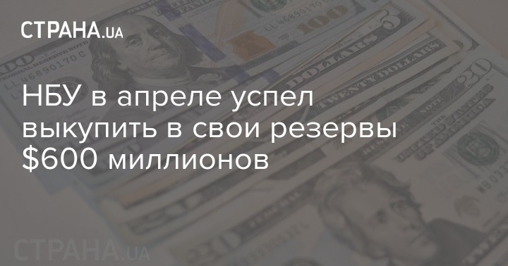 Национальный банк Украины с начала апреля выкупил в свои резервы порядка 600 млн долларов.