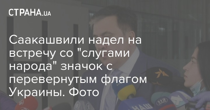Бывший глава Одесской ОГА и кандидат на пост вице-премьера по реформам Михаил Саакашвили пришел на заседание фракции "Слуга народа", приколов к пиджаку значок с украинским флагом, но в перевернутом видео.