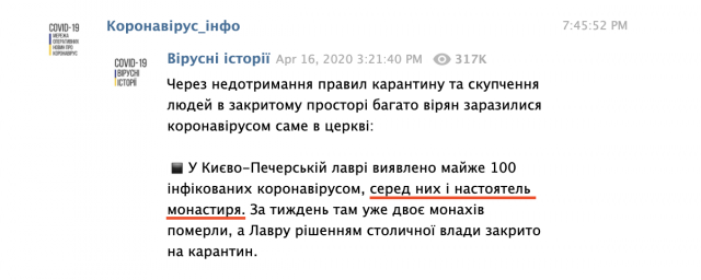 26 апреля российское издание РБК опубликовало новость под заголовком "Киево-Печерской лавре коронавирусом заразились все священники".