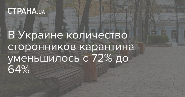 В Украине на треть снизилось число украинцев, которые поддерживают необходимость карантина. За две недели до окончания карантина, эту меру назвали необходимой в борьбе с коронавирусом 64%. Еще две недели назад данный показатель составлял 72%.