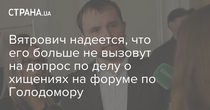 Экс-глава Украинского института национальной памяти нардеп Владимир Вятрович, который 28 апреля побывал на допросе в ГБР по делу о хищениях во время организации форума по Голодомору, надеется, что больше его следователь не вызовет.