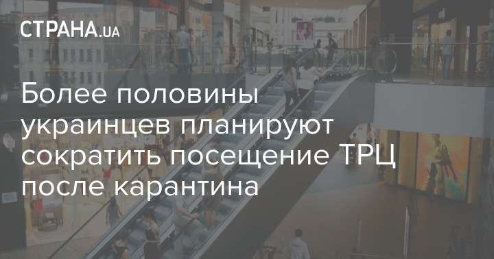 Более 52% украинцев планируют сократить посещение торгово-развлекательных центров (ТРЦ) после карантина из-за снижения доходов, опасения заразиться и переориентирования на онлайн-покупки.