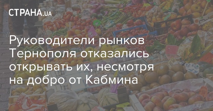 "Ввиду роста заболеваемости коронавирусом, руководители рынков отметили, что не хотят рисковать здоровьем как своих работников, так и жителей города. Поэтому приняли решение до 11 мая продовольственные рынки в Тернополе не открывать", - говорится в сообщении.