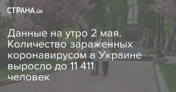 По состоянию на утро субботы, 2 мая, в Украине зафиксировано уже 11411 случаев заражения коронавирусом Covid-19. Вчера, 1 мая, этот показатель составлял 10 861 случай. Новых эпизодов за сутки - 550.